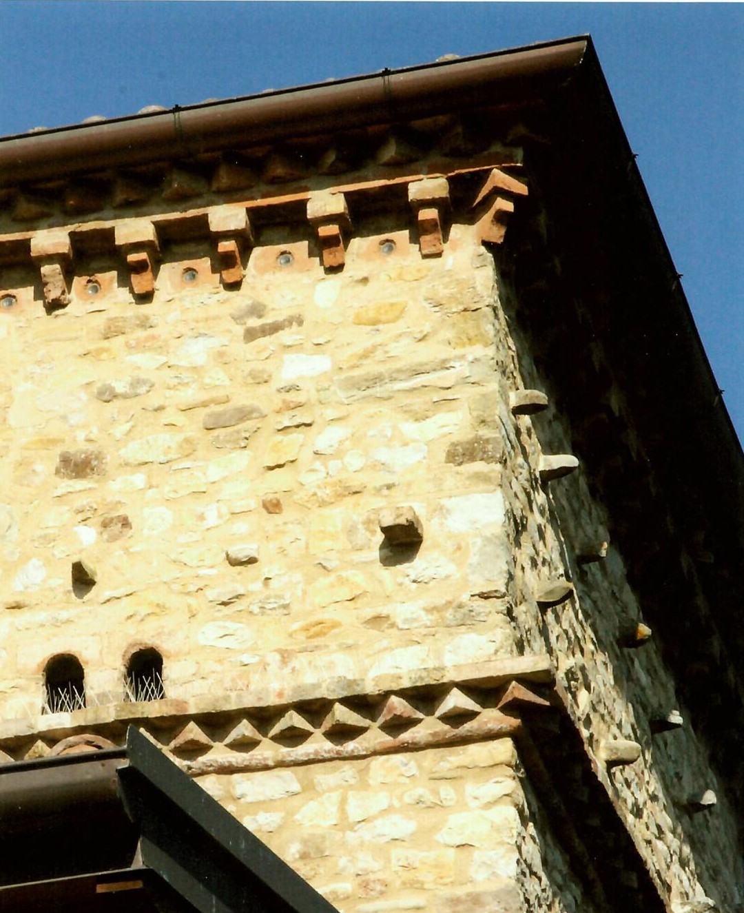 Inizialmente le torri erano due, una è stata capitozzata nel tempo ma conserva ancora una feritoia archibugiera dalla quale si controllava l’accesso sulla strada nell’estremo confine a sud del castello. La parola Broletto deriva proprio da “brolo” che significava recinzione con orto del Castello come si riscontra in varie città tra cui Reggio Emilia. la massiccia struttura della torre conserva ancora un bel cordolo di colombaia con bifore in laterizio per l’accesso dei piccioni e un ricercato soffitto di gronda composto da diversi ordini decorativi di mattoni.