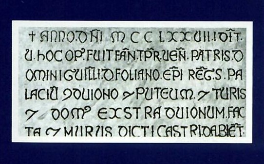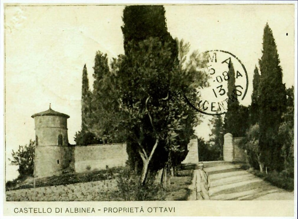 I Castelli, secondo la loro prevalente funzione si dividono in castelli di difesa o residenziali, i primi sono di aspetto truce e rustico come quello di Borzano e di Montericco, mentre i secondi sono più lineari ed eleganti come appunto quello di Albinea. L’origine è sempre una rocca che, in questo caso risulta di proprietà della Parrocchia di S. Prospero e da questi ceduta al Comune di Reggio Emilia. Se nel 980 la Corte e la Pieve di Albinea esistono già, come dimostra il documento di Ottone II, anche una piccola o grande torre doveva far parte della Corte stessa. Per parlare però di Castello dobbiamo aspettare il 1277 quando una pietra murata all’ingresso ne documenta la ricostruzione per opera del Vescovo Guglielmo Fogliani che qui stabilisce la sua Residenza. Nella pietra riportata sotto viene descritta la costruzione del palazzo, della torre, che si vede parzialmente oggi accorpata nel fianco ovest de castello, e delle mura con torri rotonde agli angoli del parco.