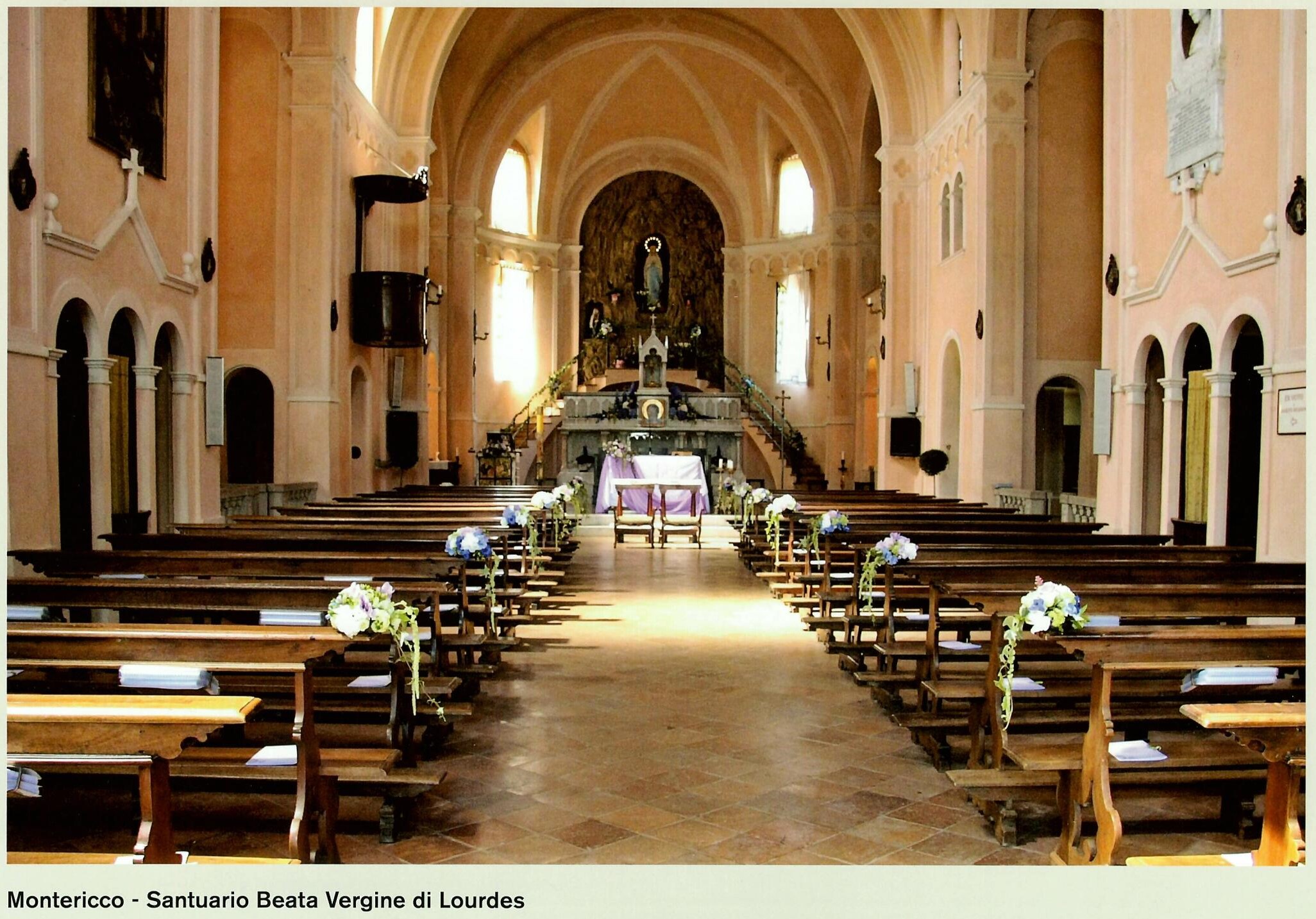 Iniziata nel 1896, fu la prima chiesa in Italia dedicata alla Madonna di Lourdes. Alla sua costruzione collaborarono tutti gli abitanti che con un lungo passamano trasferirono dalla pedemontana sino alla sommità del colle tutti i mattoni necessari.
