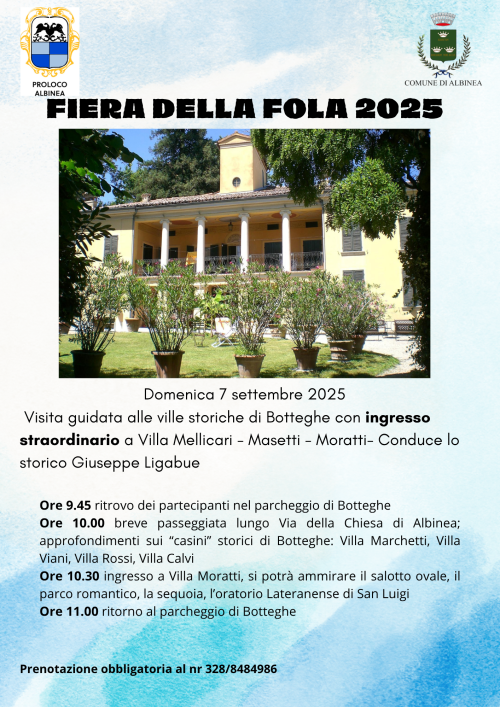Visita guidata alle ville storiche di Botteghe con ingresso straordinario a Villa Mellicari – Masetti – Moratti conduce lo storico Giuseppe Ligabue