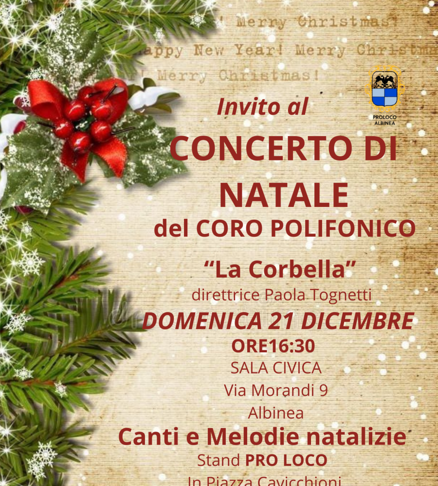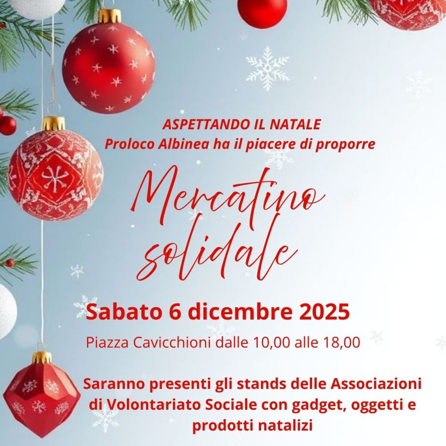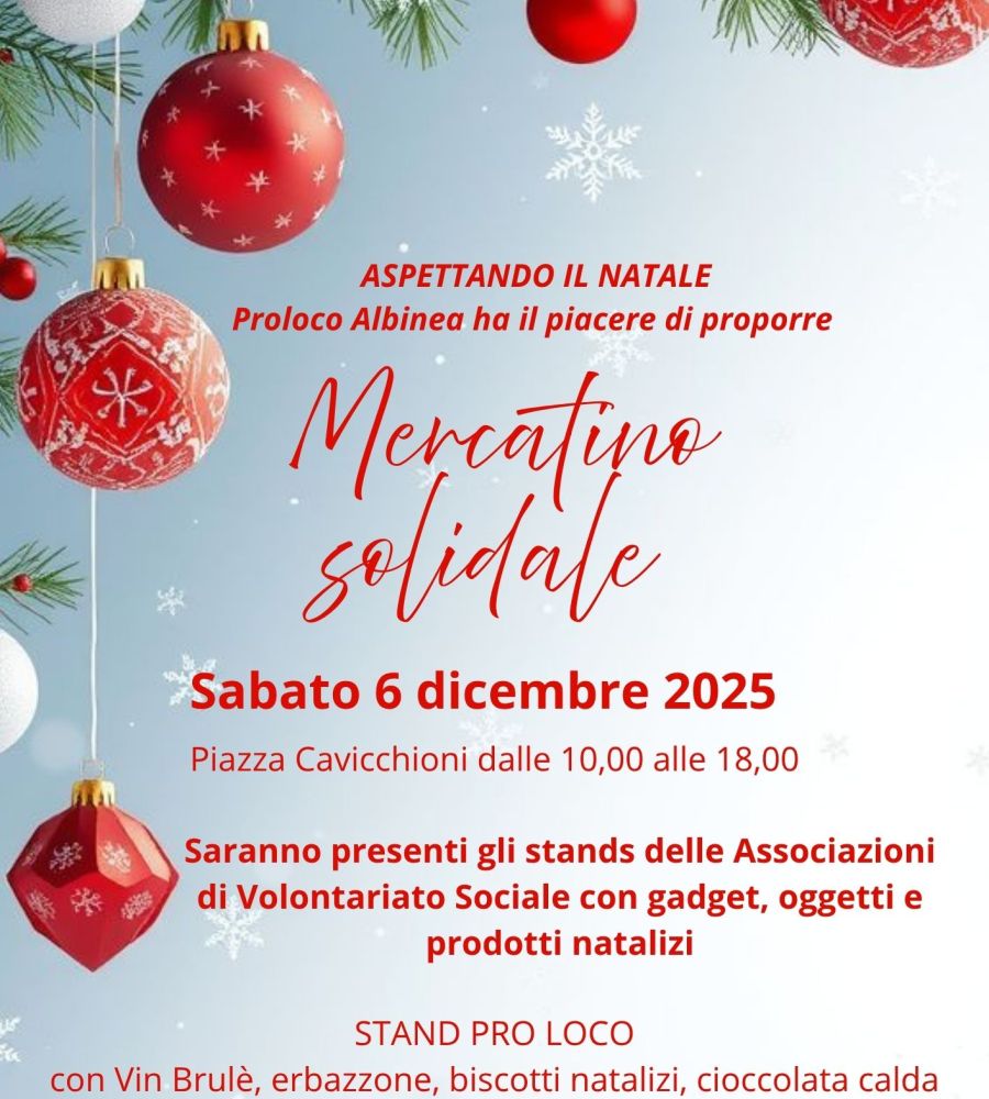 Aspettando il natale Pro Loco di Albinea APS ha il piacere di proporre il “Mercatino solidale” sabato 6 dicembre 2025 in Piazza Cavicchioni dalle 10 alle 18. Vi saranno numerose associazioni: AIMA, APRO ETS, AUSER, Casa Betania, Casina dei Bimbi, Casa Cervi, Croce Verde Albinea, Curare ONLUS, ARCA, Emporio Dora, Fondazione Grade, Jaima Saharawi, Libera, […]