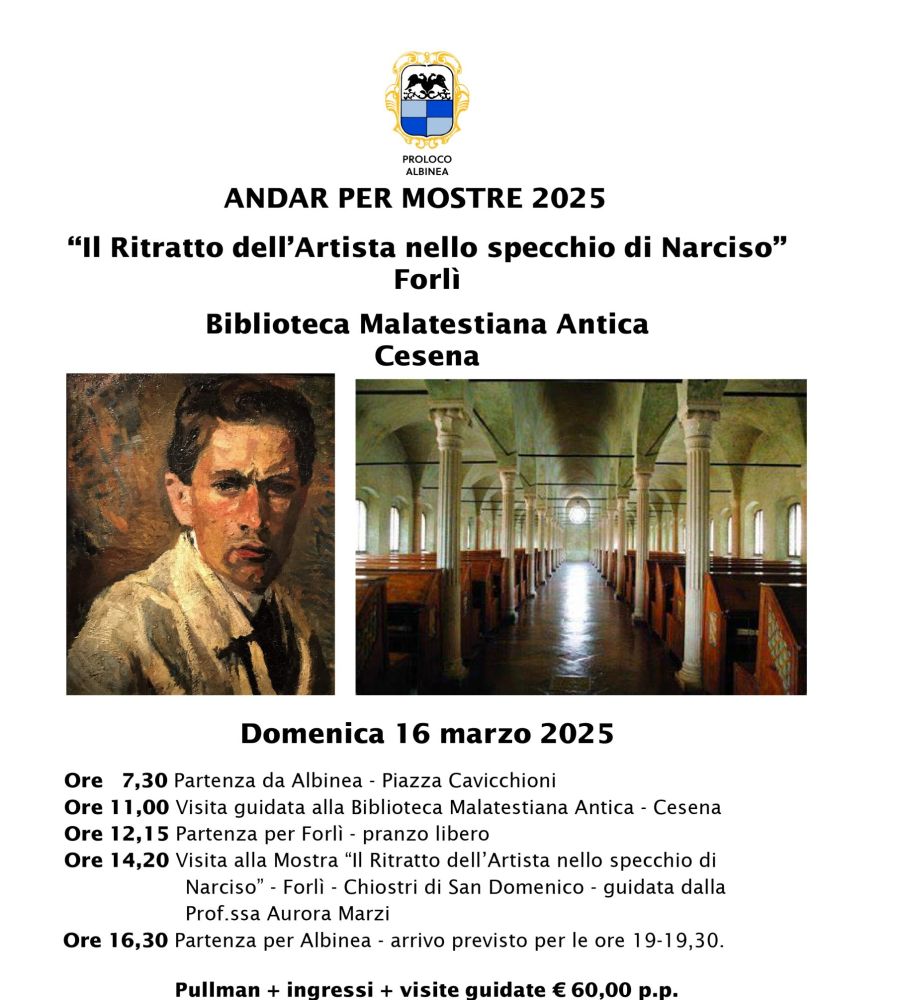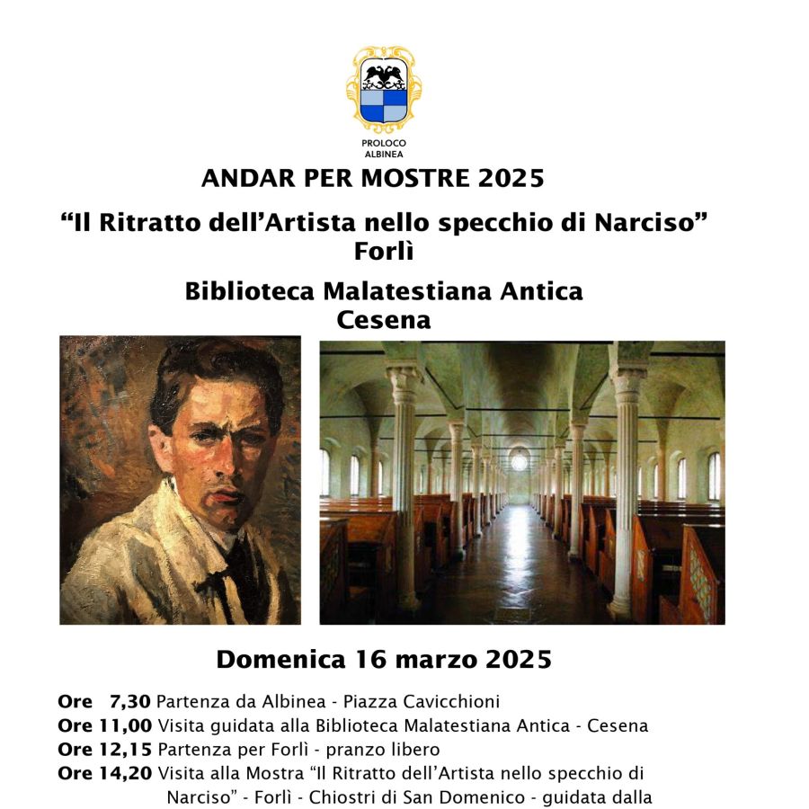 16 marzo 2025 ANDAR PER MOSTRE 2025 Forlì – Il Ritratto dell’Artista nello Specchio di Narciso , Cesena – Biblioteca Malatestiana Antica Pro Loco Albinea vi invita alla prima uscita di Andar per Mostre 2025 Scopri di più