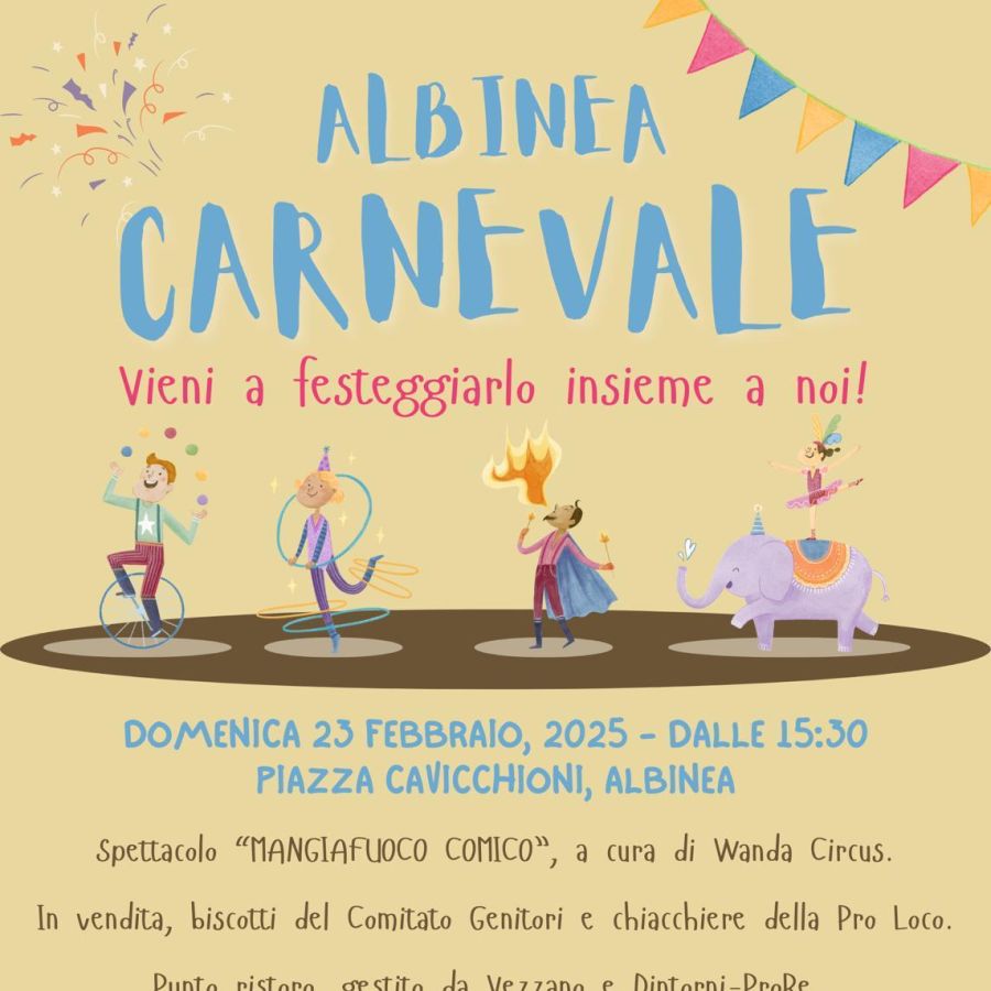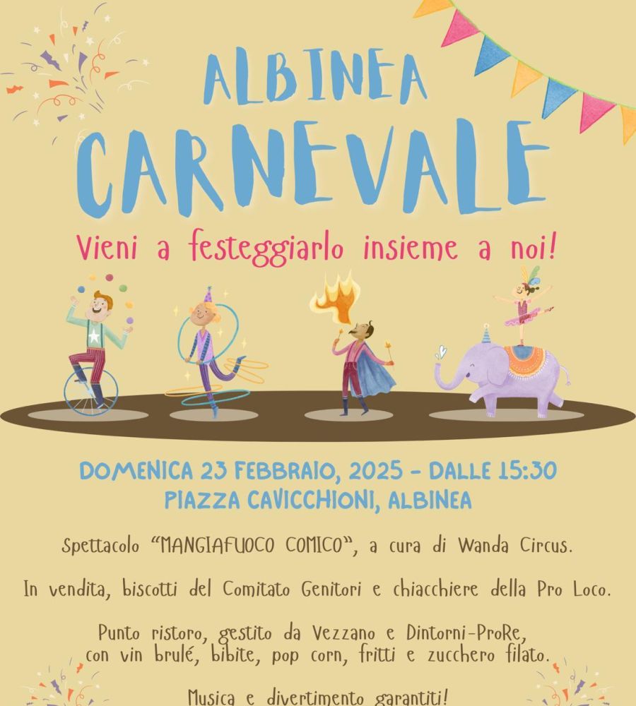 23 febbraio 2025 – dalle ore 15,30 Carnevale ad Albinea – Domenica prossima in Piazza Cavicchioni TUTTI IN PIAZZA A FESTEGGIARE IL CARNEVALE CON SPETTACOLI, MUSICA E …. DIVERTIMENTO GARANTITO! Scopri di più
