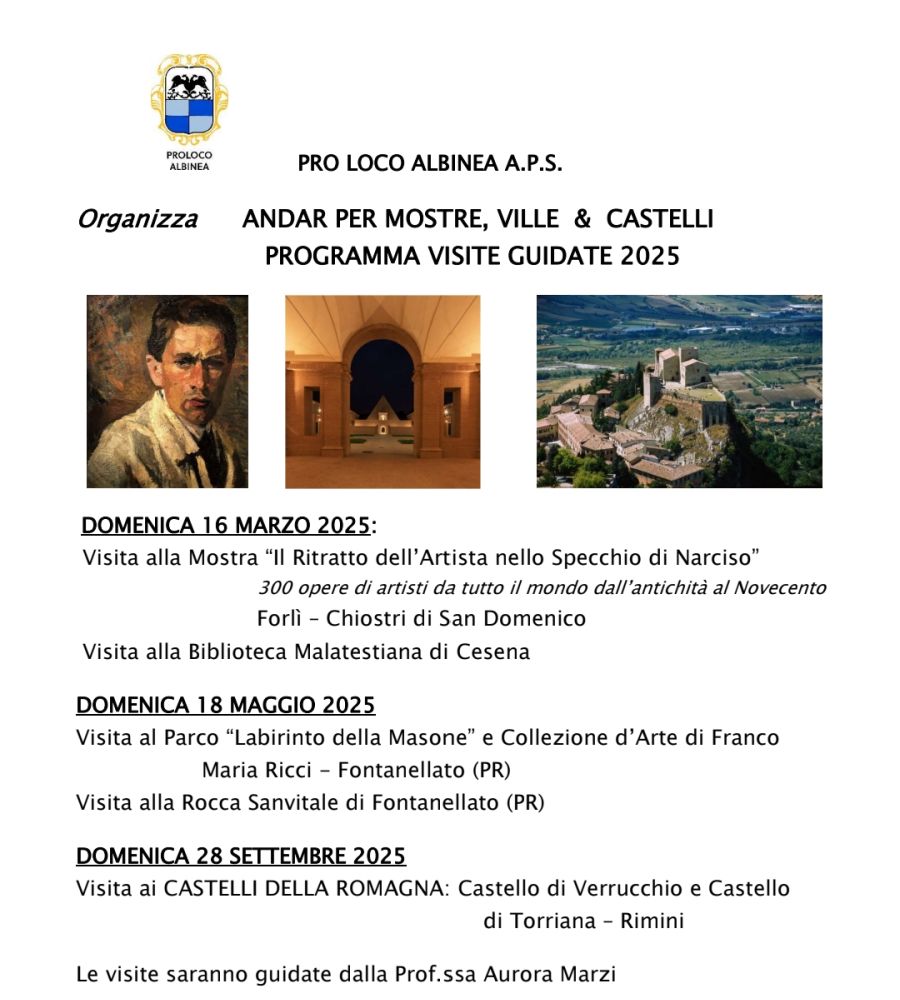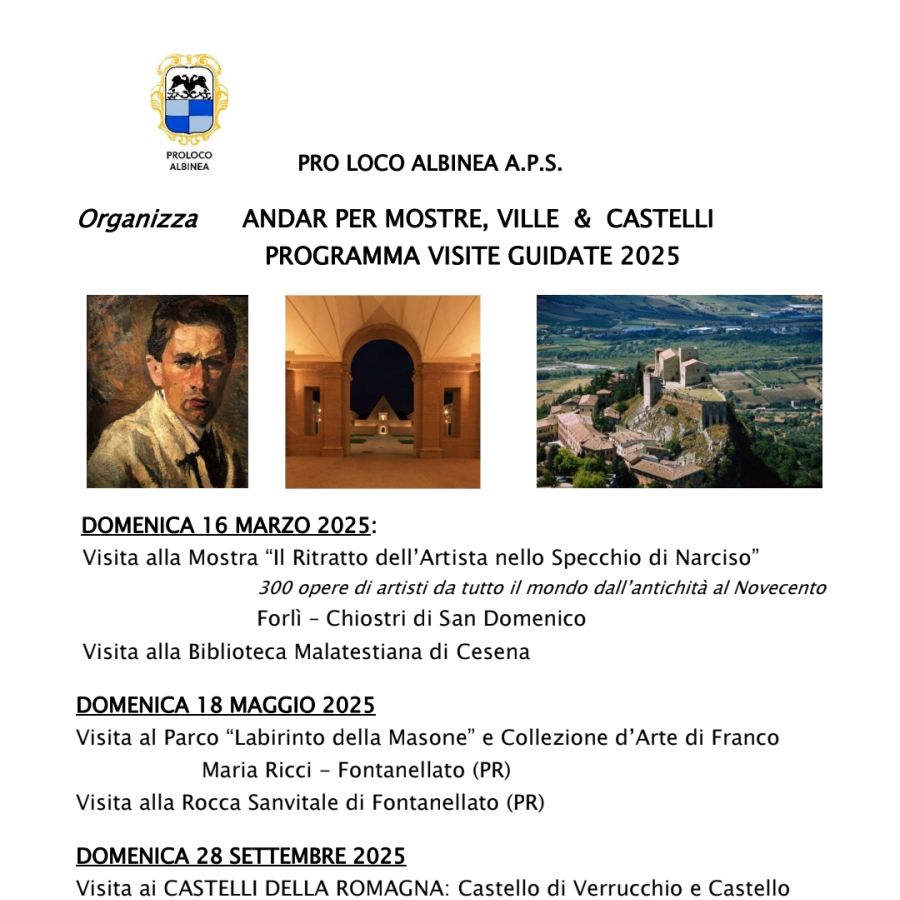 SAVE THE DATE!!! – Domenica 16 Marzo 2025 – Domenica 18 Maggio 2025 – Domenica 28 Settembre 2025 PROGRAMMA VISITE GUIDATE 2025 ANDAR PER MOSTRE, VILLE & CASTELLI Scopri di più
