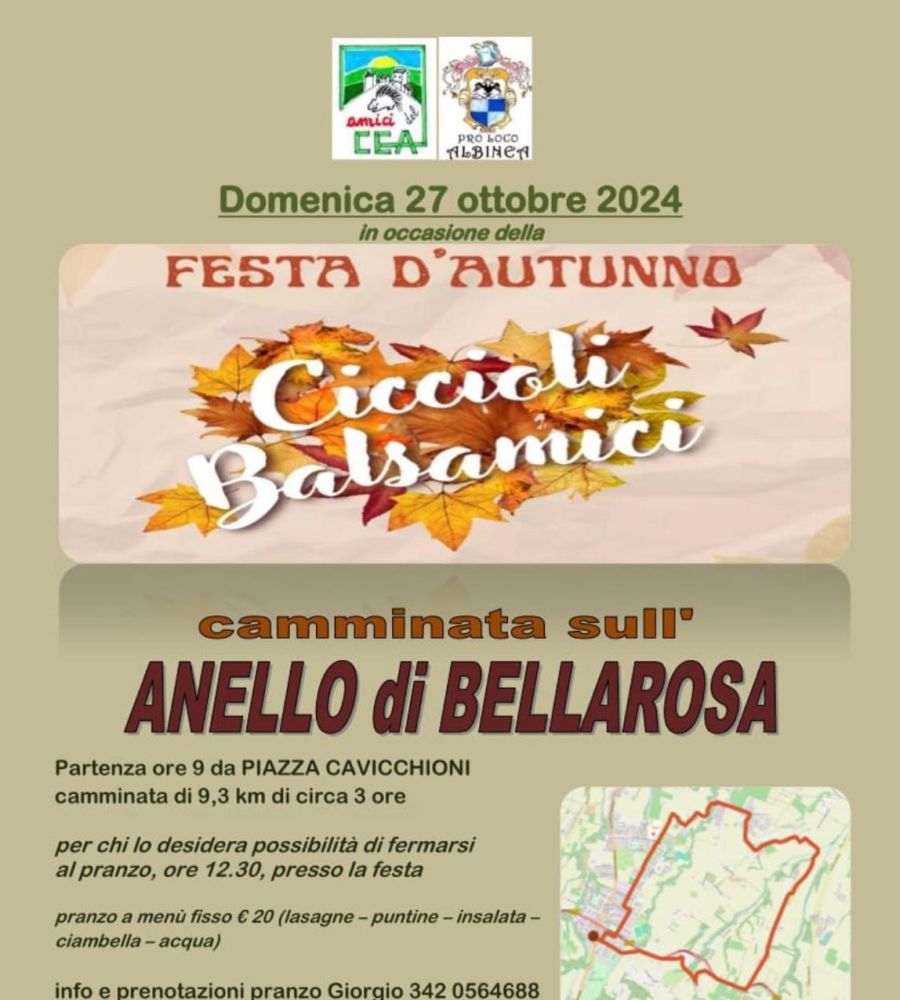 Domenica 27 Ottobre ore 9:00 In occasione della Festa d’Autunno Camminata sull’Anello di Bellarosa Partenza ore 9:00 da PIAZZA CAVICCHIONI Camminata di 9,3 km, circa 3 ore. Per chi lo desidera ci sarà la possibilità di fermarsi a pranzo presso la festa alle ore 12:30. Scopri di più