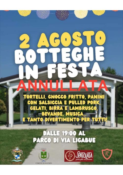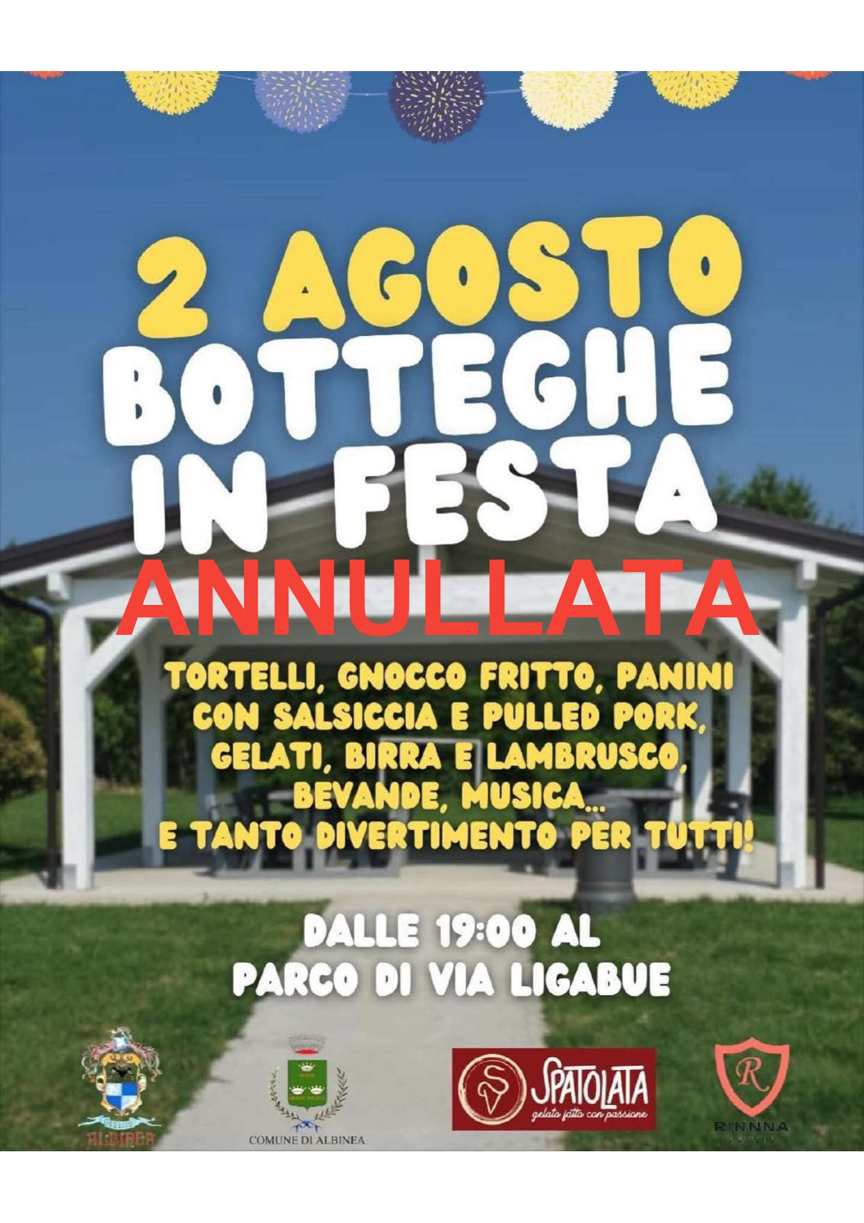 2 AGOSTO – BOTTEGHE IN FESTA – ANNULLATA CAUSA MALTEMPO