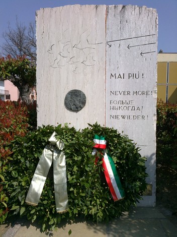 Sarà deposta una corona davanti al monumento di marmo – prelevato da Mario Crotti dalle Cave di Montecassino- pensato e realizzato da Adriano Corradini affinché resti come simbolo di dolore e di richiamo alla pace tra i popoli