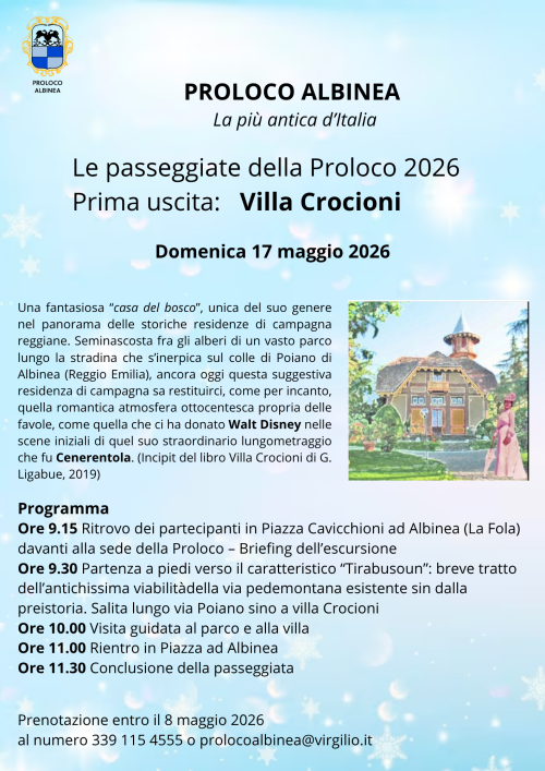 Ore 9.15 – Ritrovo in Piazza Cavicchioni ad Albinea (La Fola) davanti alla sede della Proloco